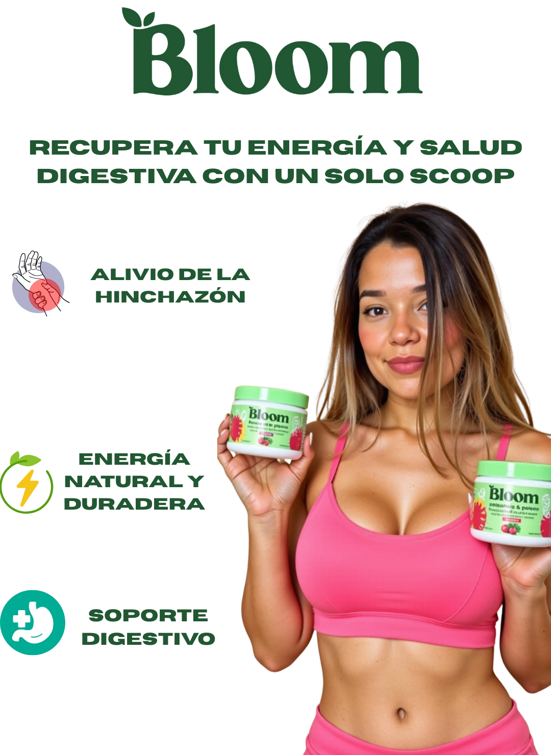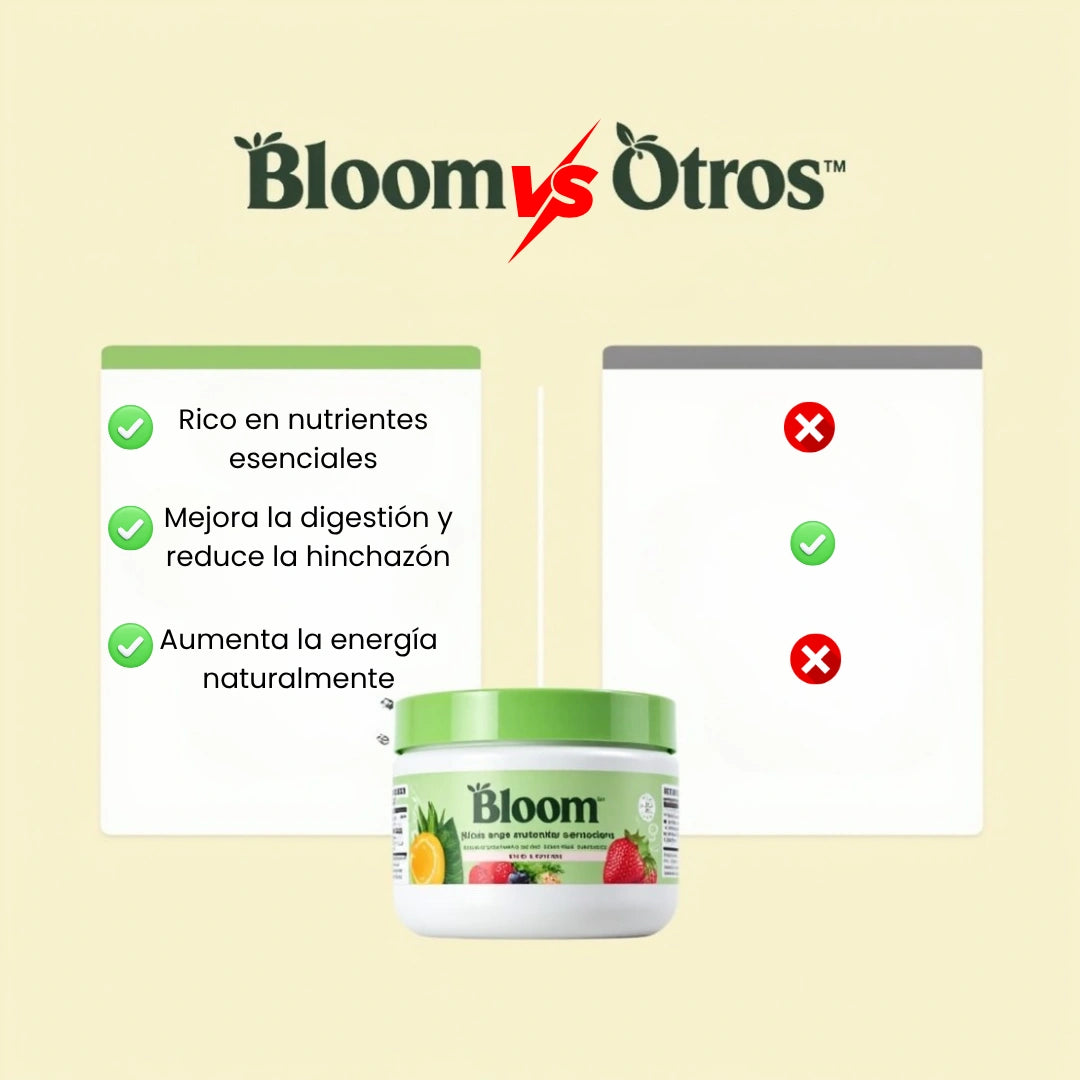 Con Bloom Nutrition, experimentarás una mejora en la digestión, reducción de la hinchazón, aumento de energía, y un impulso general en tu bienestar. Además, recibirás una dosis diaria de nutrientes esenciales gracias a los 38 ingredientes naturales que contiene.